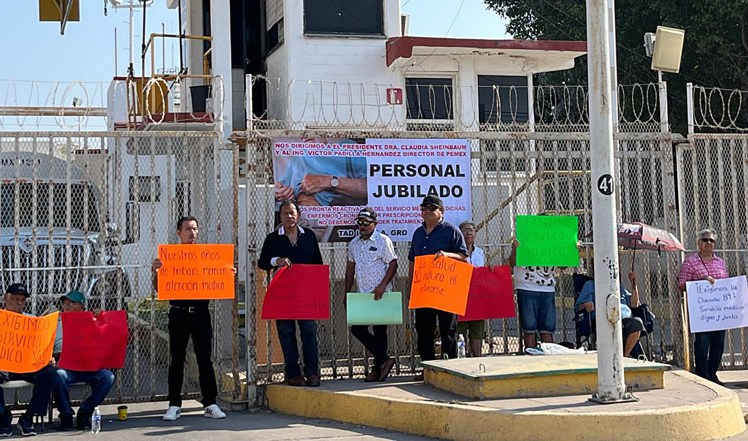 Iguala, Gro., Este viernes un grupo de jubilados de Petróleos Mexicanos (Pemex) bloquearon el acceso por tiempo indefinido e impidieron la salida de las pipas que transportan y distribuyen el combustible a las diferentes gasolineras del municipio, la demanda única es servicio médico y medicamentos.