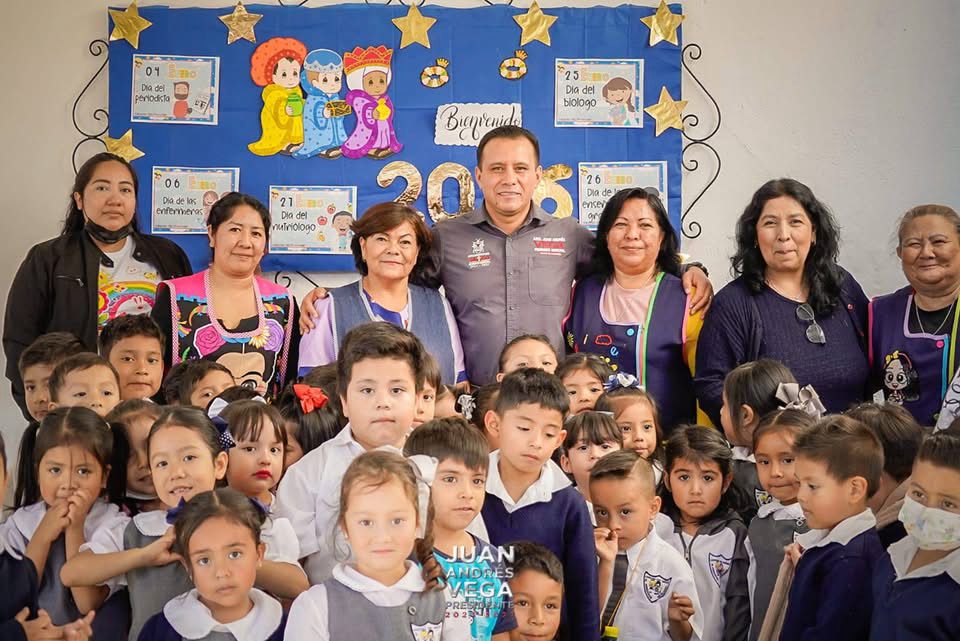 Taxco, Gro., Febrero 4.- El alcalde, Arq. Juan Andrés Vega Carranza, realizó una gira de trabajo durante la cual visitó el Jardín de Niños Pensador Mexicano, un espacio donde se siembran valores, aprendizajes y sueños que marcan el inicio del camino de nuestras niñas y niños.