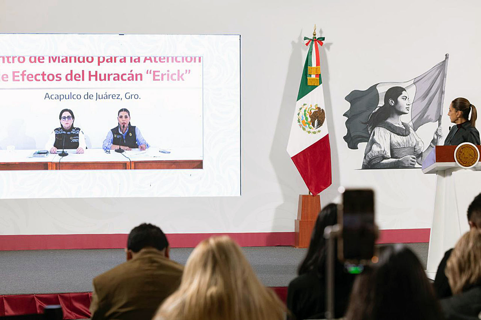 Evelyn Salgado dijo que continúa la suspensión de clases, y las medidas preventivas en el estado, a lo cual, la población ha respondido muy bien, además, agradeció a la presidenta Claudia Sheinbaum por todo su apoyo, a través de las dependencias federales, por lo que se continuará monitoreando el paso del huracán Erick.