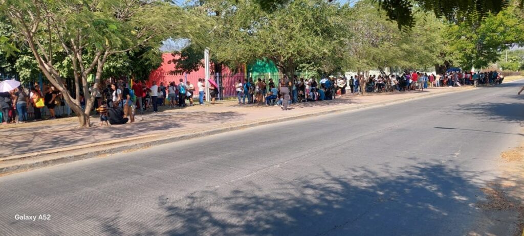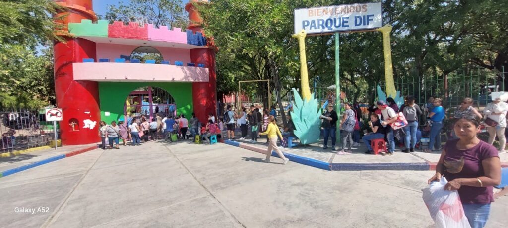 Desde las 5:00 horas de este jueves, cientos de personas comenzaron a formarse en el acceso principal de las instalaciones del DIF Municipal. Con el paso del tiempo, la fila se extendió de manera considerable sobre el Periférico, alcanzando casi el cuartel militar ubicado frente a Galerías Tamarindos, y rodeando la zona hasta retornar al bulevar Heroico Colegio Militar.