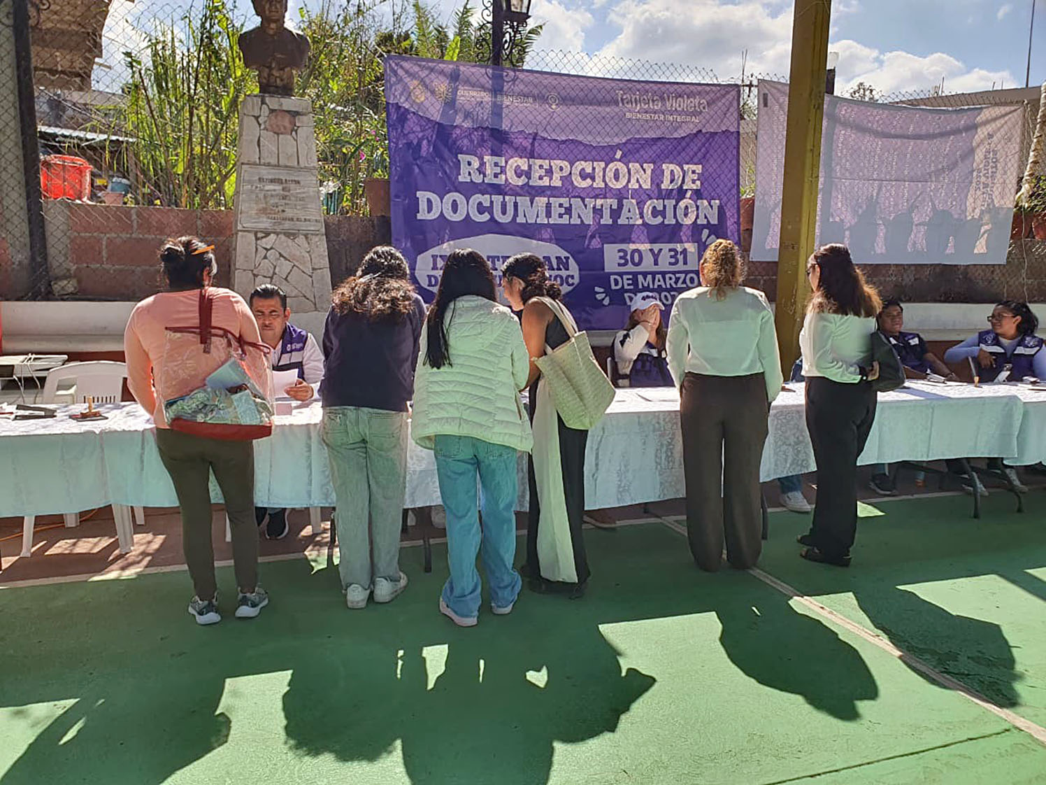 Más de 120 jefas de familia acudieron al llamado para entregar la documentación correspondiente a la solicitud de este programa integral. La directora del Programa estatal, Paula Andrea Aguilar Sirtori explicó a las asistentes los beneficios que en este 2026 tendrá Tarjeta Violeta.