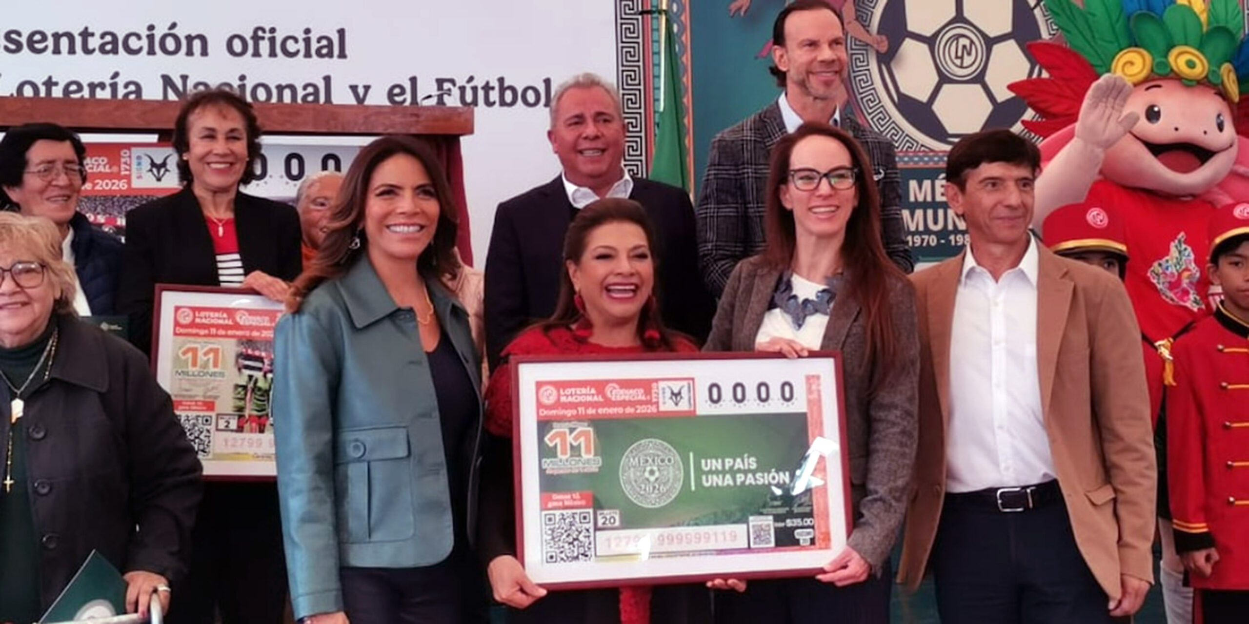 En el evento estuvieron presentes ex futbolistas como Alicia “La Pelé” Vargas, Miguel España y Luis Roberto Alves “Zague”, así como Gabriela Cuevas, representante de México ante la FIFA para el Mundial 2026, y Olivia Salomón, directora general de la Lotería Nacional, quien encabezó la develación del billete conmemorativo.