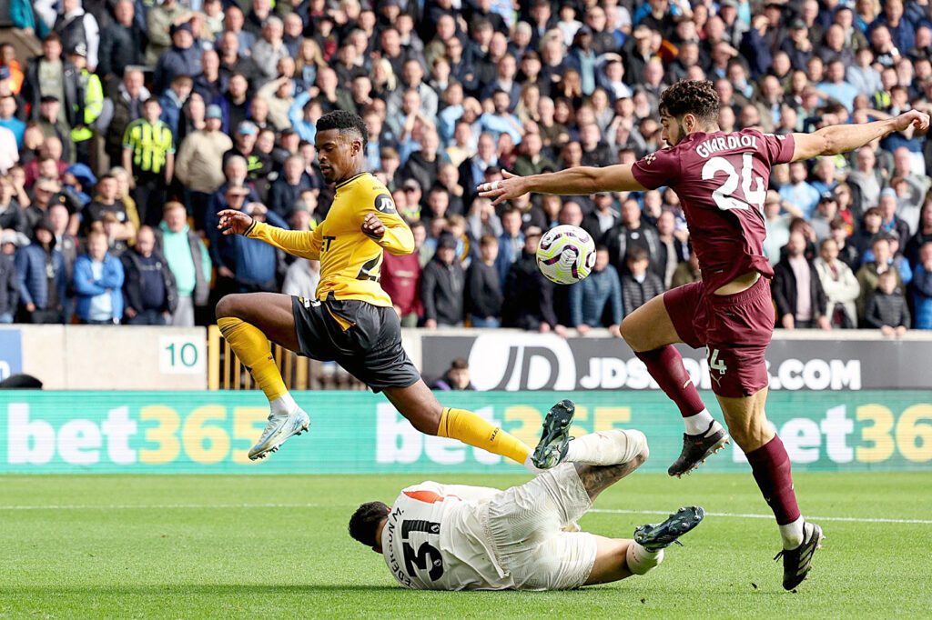 Pese a la victoria, la visita a los West Midlands confirmó la permeabilidad de la defensa del City esta temporada. El atacante noruego Jorgen Strand-Larsen (7) abrió el marcador gracias a una gran salida de balón de los Wolves, pese a la presión visitante.