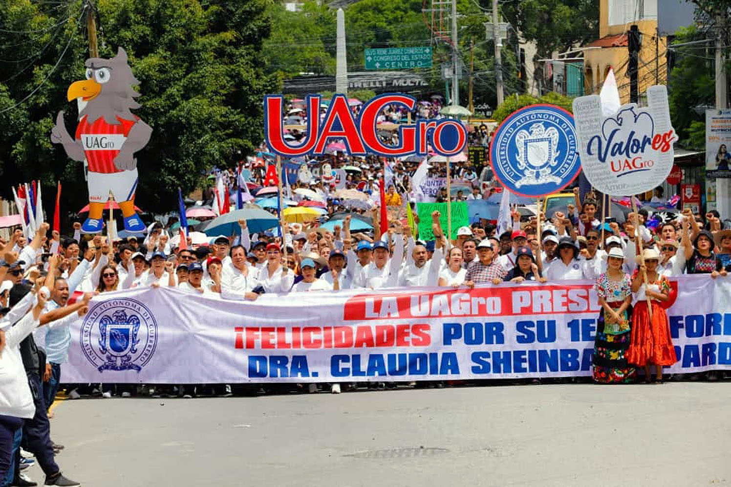 Chilpancingo, Gro., Con una manifestación de apoyo que congregó a más de 8 mil 500 integrantes de su comunidad, la Universidad Autónoma de Guerrero (UAGro), encabezada por su rector Javier Saldaña Almazán, participó en el recibimiento a la Presidenta de México, Claudia Sheinbaum Pardo, en el marco de su gira nacional por su Primer Informe.