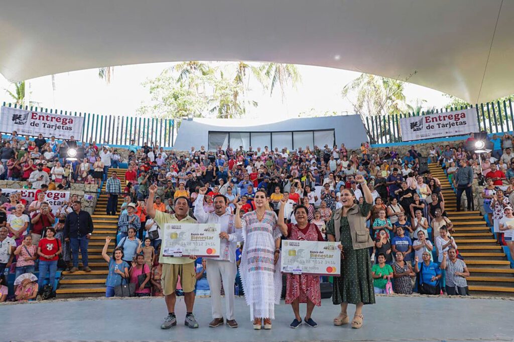 Enseguida, la gobernadora junto al delegado de los Programas para el Bienestar en Guerrero, Iván Hernández Díaz, hicieron entrega de tarjetas a beneficiarios de colonias como La Venta, La Zapata, Centro, Barrios Históricos, La Guinea, La Laja, Renacimiento, Agua de Perro, Texca, Pueblo Galeana, San Pedro Las Playas, entre otros.