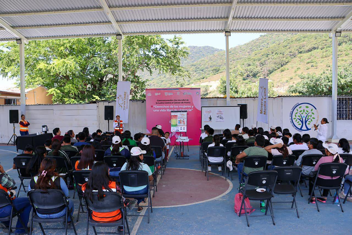 Eduardo Neri, Gro., En el marco de la conmemoración del Día Mundial de la Lucha Contra el Cáncer de Mama, la Minera Media Luna en coordinación con la Secretaría de la Mujer Guerrero, llevamos a cabo la conferencia “Derechos de las mujeres y una vida libre de violencia” en la comunidad de San Miguel Vista Hermosa, municipio de Eduardo Neri.