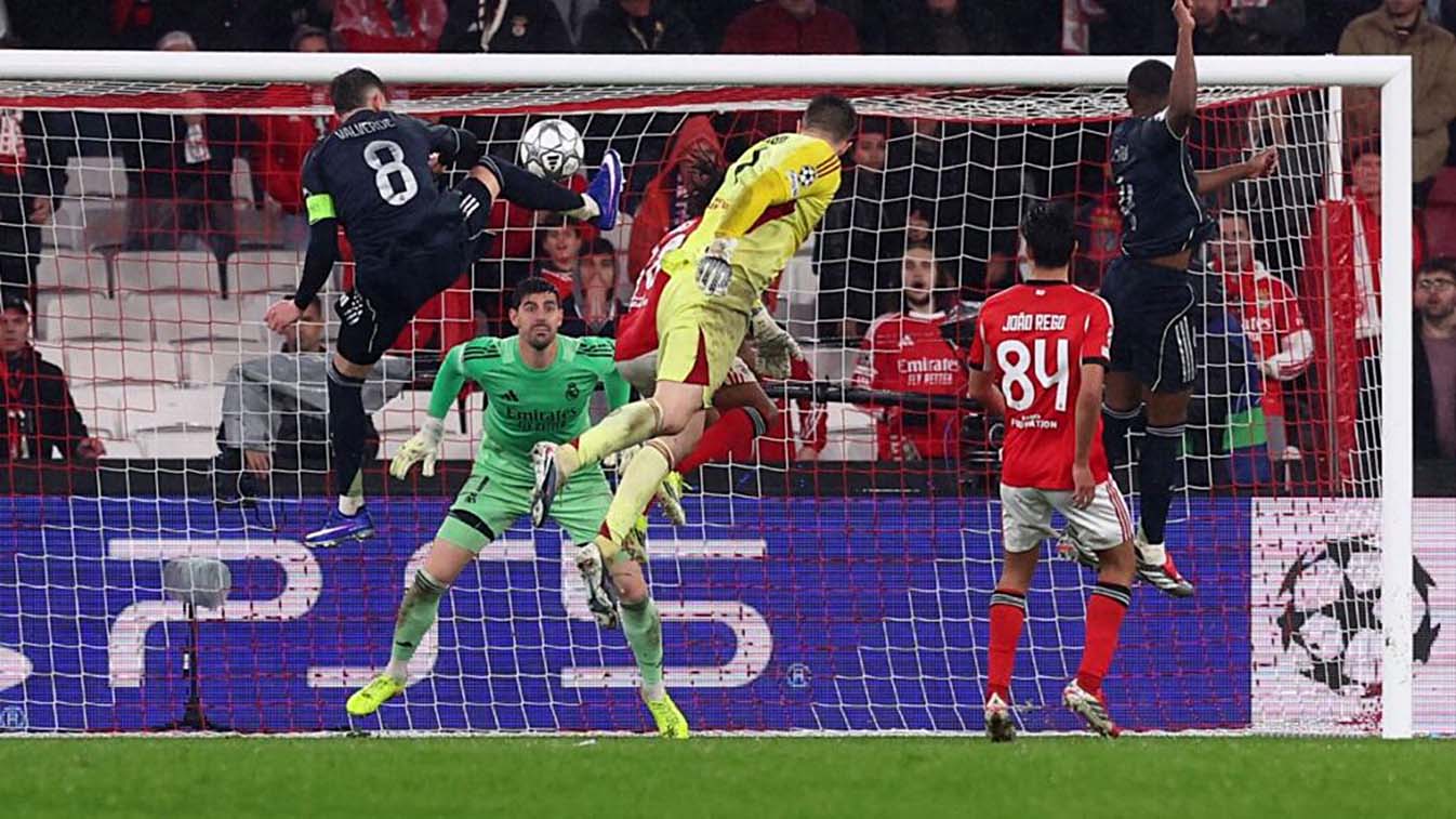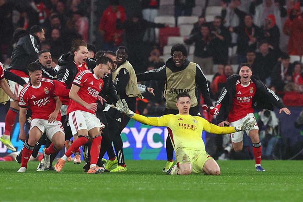 Lisboa, Portugal, El DT José Mourinho mandó al portero Anatolii Trubin al área del Real Madrid. El Benfica requería de una anotación para colarse en el último sitio del repechaje de la Champions. Centro, cabezazo del meta ucraniano de casi dos metros y gol para el 4-2 definitivo. Esa acción, adicionalmente, sacó al equipo merengue de los ocho primeros clasificados que esperan rival tras la repesca del torneo.
