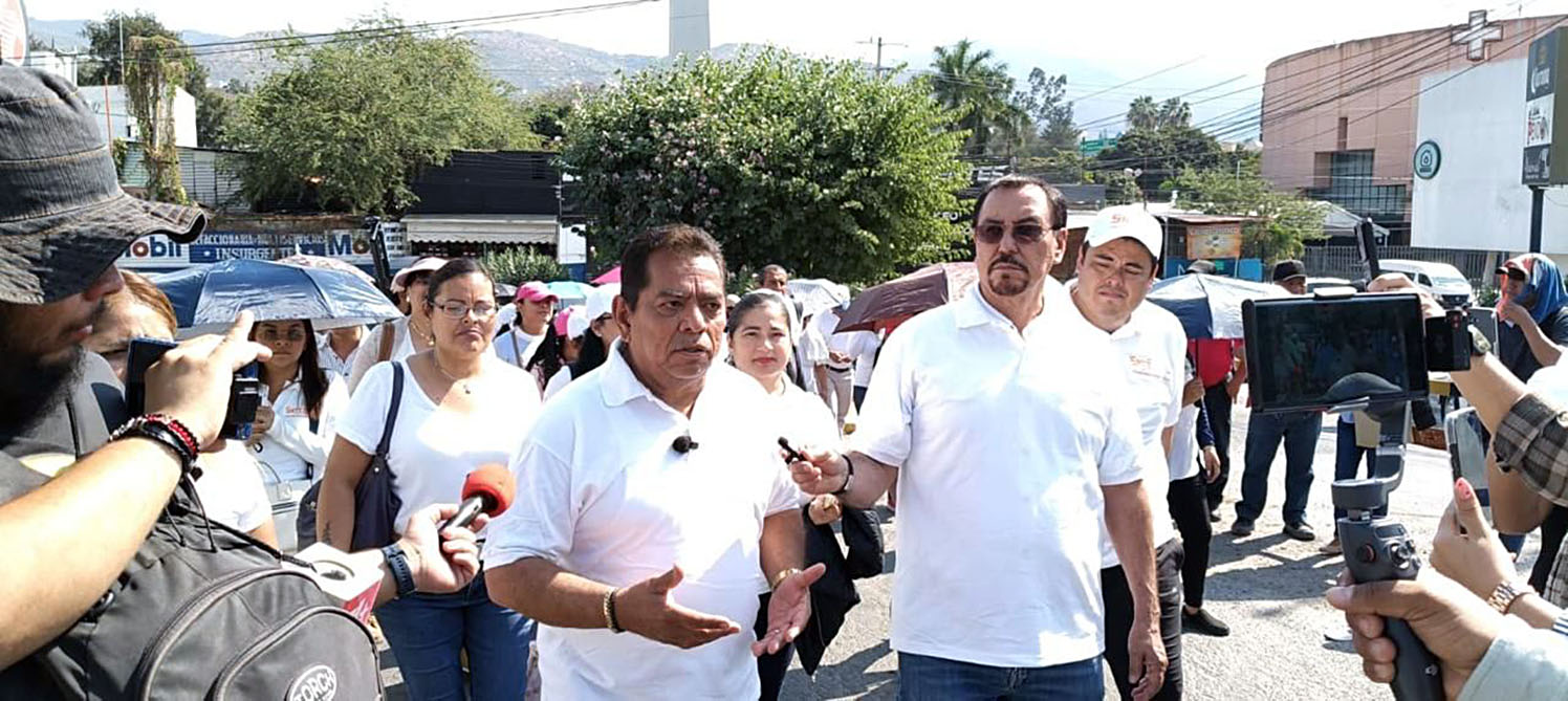 El contingente con poco más de 200 agremiados llegó después del mediodía al Recinto del Poder Ejecutivo, en donde minutos más tarde se tenía prevista una reunión con representantes del gobierno estatal.