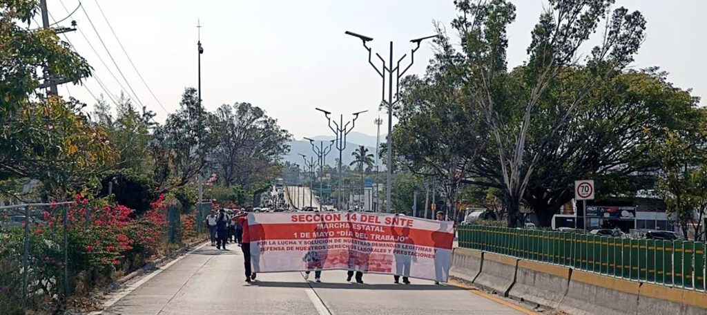 Aquí, en Chilpancingo, los trabajadores marcharon por los carriles de la Autopista del Sol hasta el palacio de gobierno, donde demandaron la liberación inmediata de los recursos.