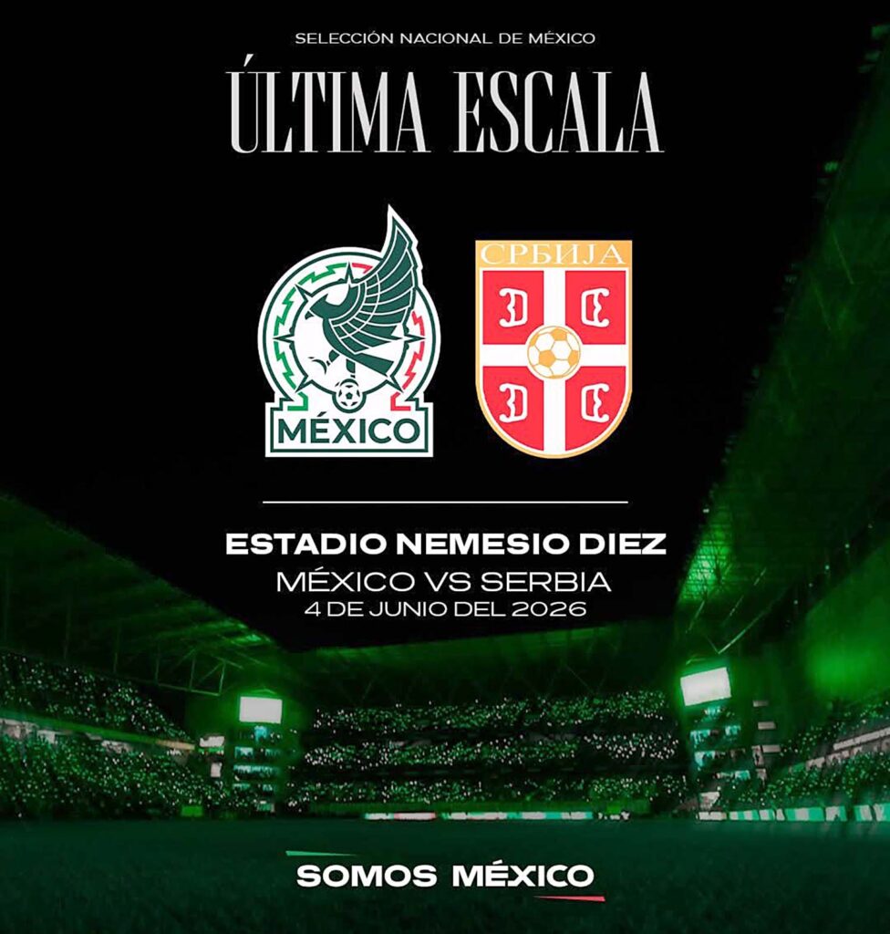 Ciudad de México, Lo que era un secreto a voces se convirtió en información oficial. La Selección Mexicana disputará su último partido previo al Mundial 2026 en Toluca, cuando reciba a Serbia en la cancha del Nemesio Diez el jueves 4 de junio, una semana antes de debutar como anfitrión en la justa.