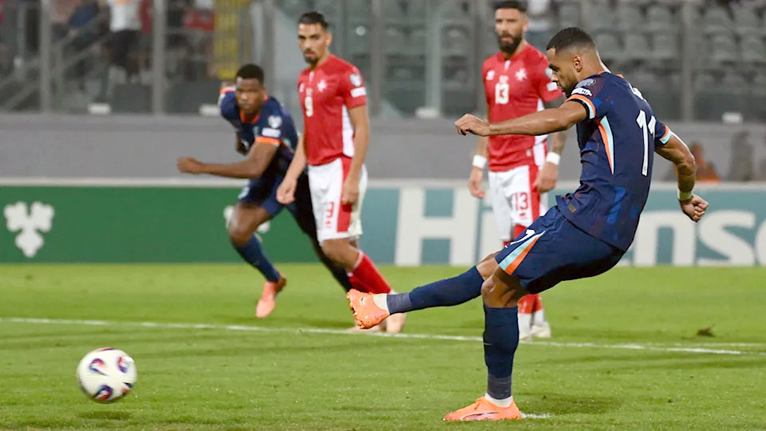 El primer gol llegó temprano, cuando Ryan Gravenberch fue derribado en el área y el árbitro marcó penal. Cody Gakpo, delantero del Liverpool, cobró con frialdad para abrir el marcador al minuto 12. El dominio continuó durante toda la primera mitad, aunque sin que Malta pudiera reaccionar ante la presión constante de los visitantes.