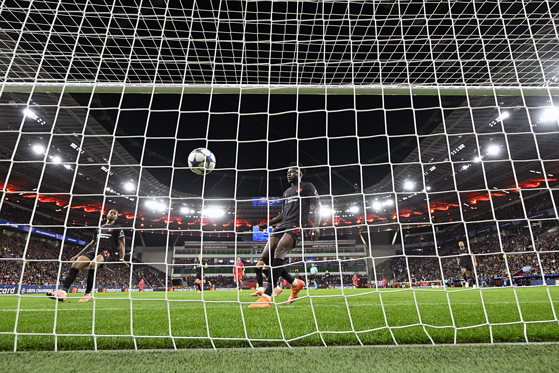 Al Bayer Leverkusen se le vino la noche encima frente a sus aficionados cuando Grimaldo falló un penal con el que hubieran empatado a uno a los 25 minutos; luego sufrieron la expulsión de Robert Andrich (minuto 33). En ese aspecto el juego, se equilibró poco después cuando Illia Zabarnyi (37) también vio la tarjeta roja del árbitro español Jesús Gil Manzano.