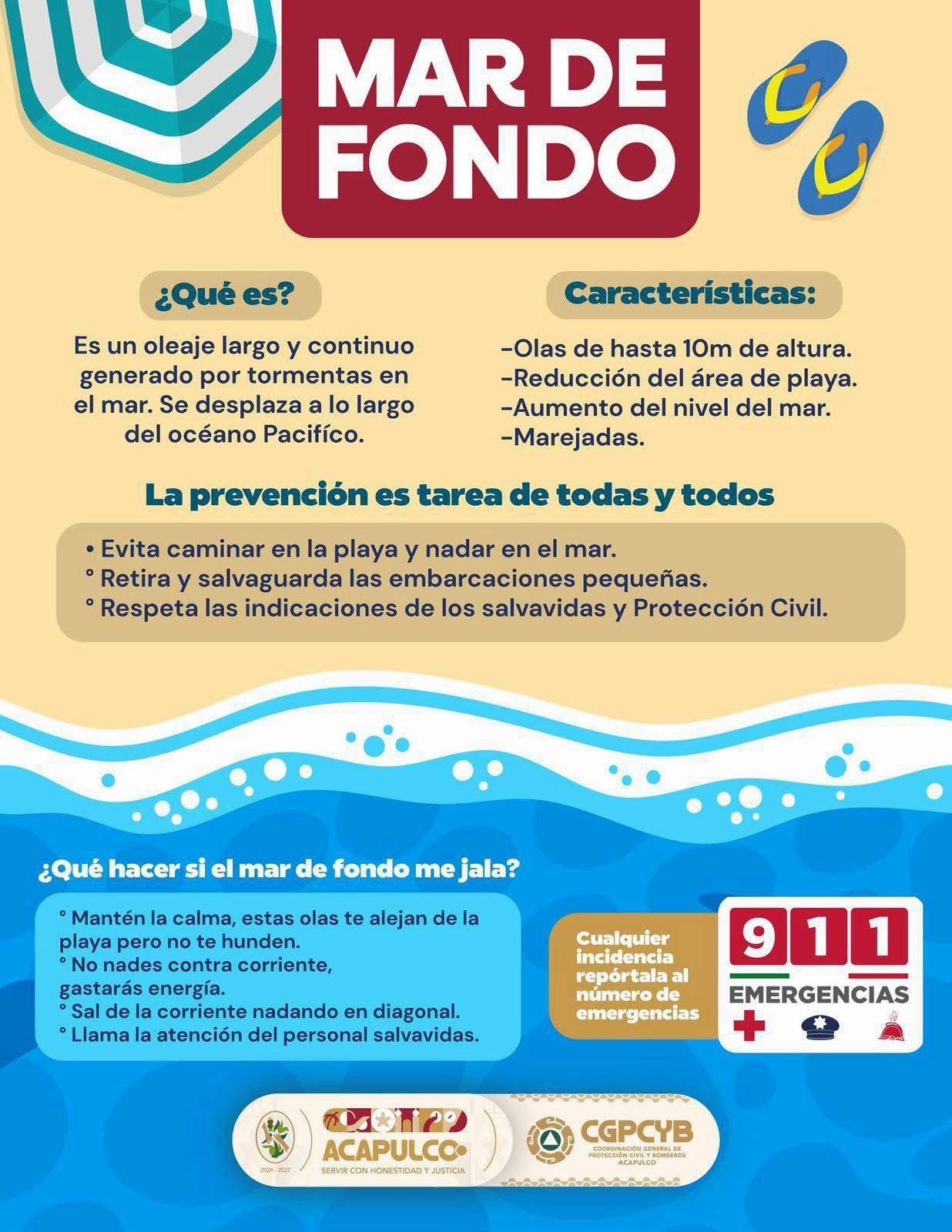 El Gobierno de Acapulco pidió atender las recomendaciones de las autoridades y mantenerse informado a través de canales oficiales. Para reportes o emergencias, la ciudadanía puede comunicarse al número 911, donde se brinda atención oportuna.