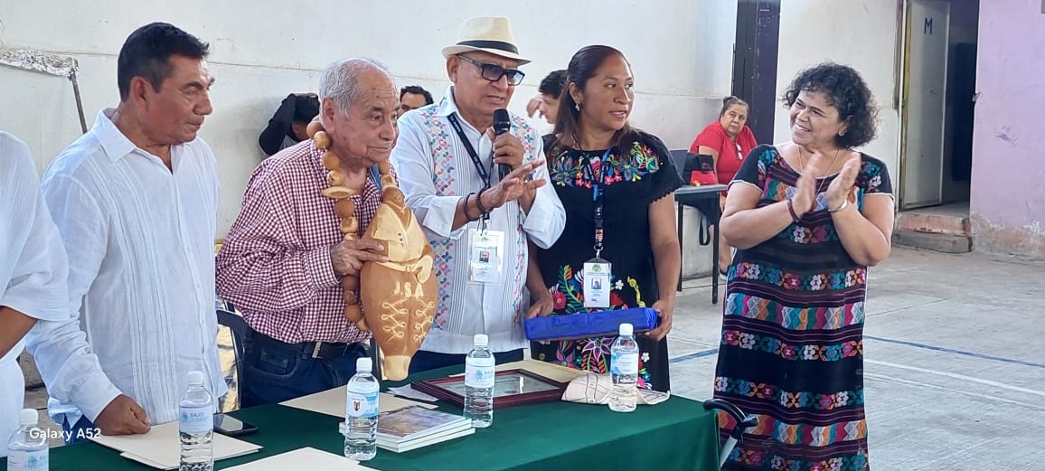 Ante autoridades educativas, municipales, ejidales, invitados especiales, estudiantes de secundaria y pobladores de la comunidad, el cartel «Así Somos» fue entregado por su editor, Juan Sánchez Andraca a la presidenta del comité de representación indígena, Patricia Carbajal Baylón.