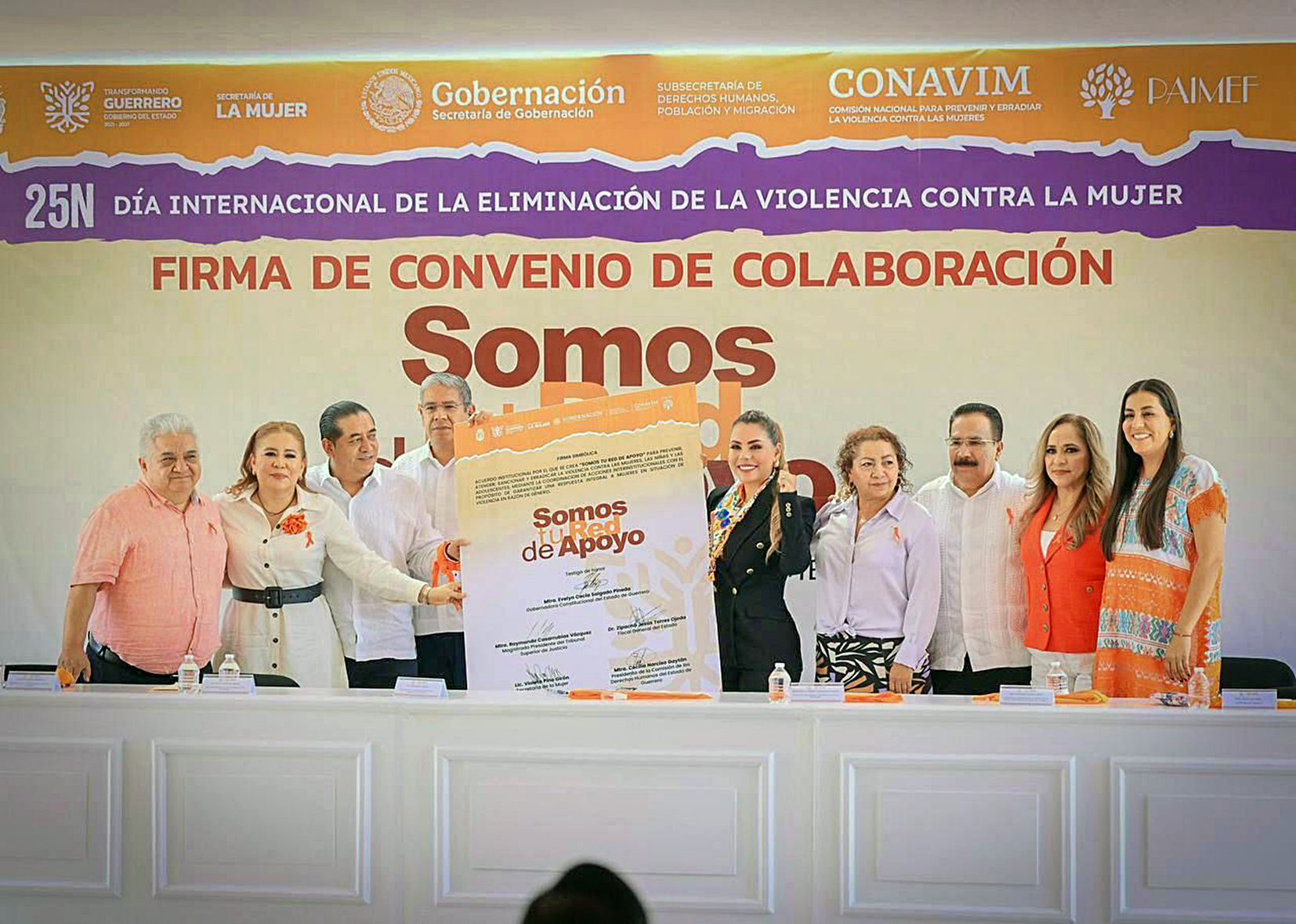 Con esta firma de colaboración, el estado de Guerrero se suma a la estrategia nacional de «Somos tu Red de Apoyo» convocada por la Comisión Nacional para Prevenir y Erradicar la Violencia contra las Mujeres (CONAVIM), para coordinar acciones y garantizar el acceso a las mujeres a una vida libre de violencia.