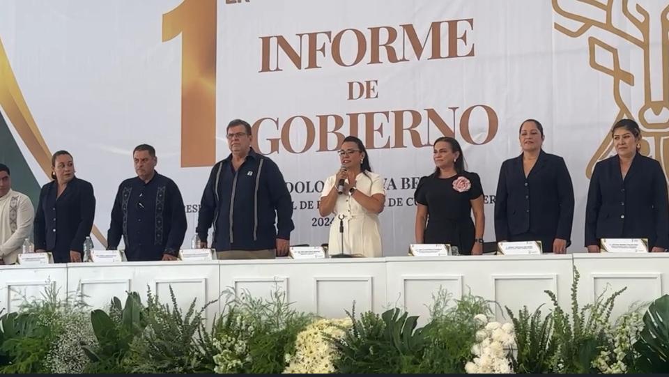 Buenavista de Cuéllar, Gro., Sept.30.- Ante un salón completamente lleno de habitantes de esta localidad, y en un ambiente de alegría y entusiasmo, la presidenta municipal de Buenavista de Cuéllar, licenciada Ma. Dolores Nava Benítez, rindió su Primer Informe de Gobierno.