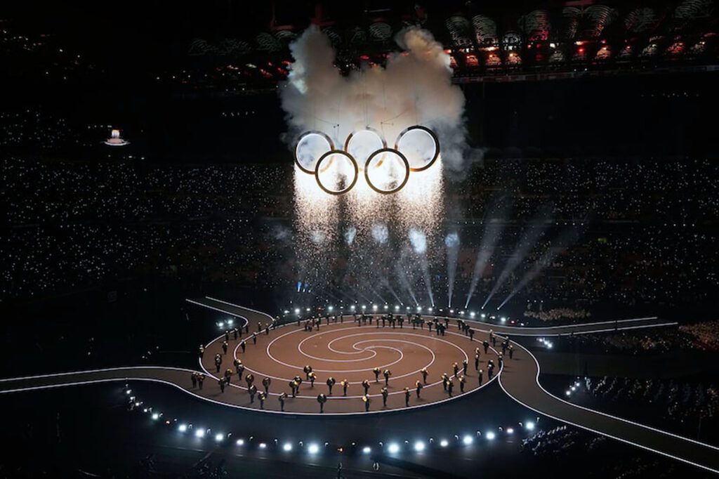 La ceremonia, con interpretación de Laura Pausini, Mariah Carey y Andrea Bocelli, entre otros artistas; con homenaje incluido al fallecido Giorgio Armani, duró más de tres horas y media con el desfile incluido de las 92 delegaciones, dividido entre las ciudades en las que se celebrarán las diferentes pruebas, algo único también en la historia del deporte olímpico.