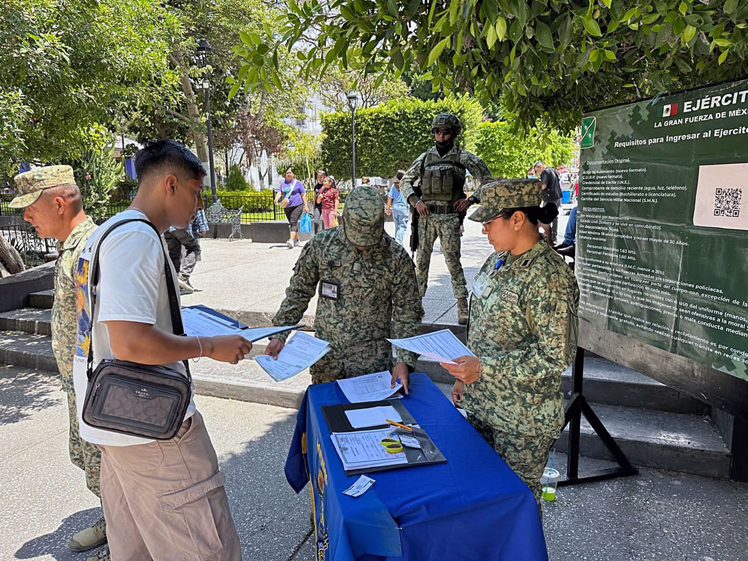 Un grupo de soldados adscritos al 6/o Batallón de Ingenieros de Combate, con sede en Chilpancingo, instaló este miércoles un módulo de información en la plaza cívica “Primer Congreso de Anáhuac”, frente a Palacio Municipal.
