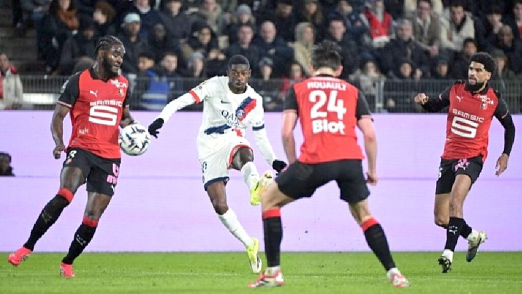 Después, Samba salvó al Rennes del gol visitante en una acción de Desire Doue, pero el conjunto de Luis Enrique no tenía el control del partido. De hecho, el meta ruso Matvev Safonov salió al paso de la amenaza de Mousa al Tamari, el más peligroso del Rennes y que abrió el marcador justo después, en el minuto 34, en una jugada individual que culminó con un tiro certero desde la frontal.