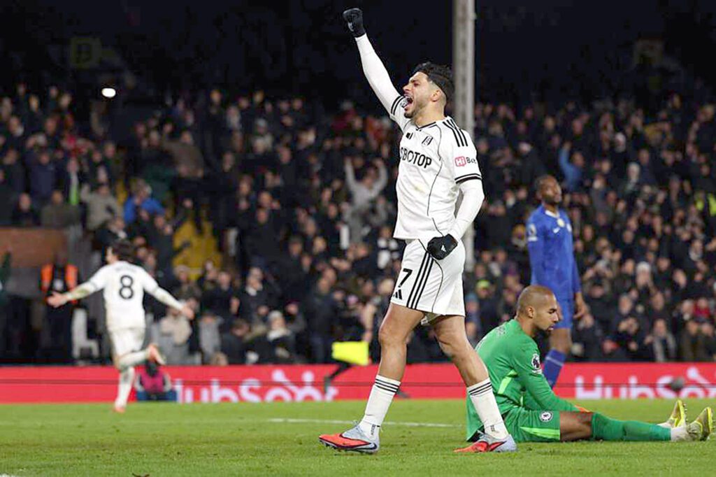 Londres, Inglaterra, Fulham aprovechó la inferioridad numérica y derrotó 2-1 al Chelsea en la Jornada 21 de la Premier League gracias a un gol de Raúl Jiménez, quien se levantó en el área y metió un testarazo espectacular para convertir el primer tanto del partido.