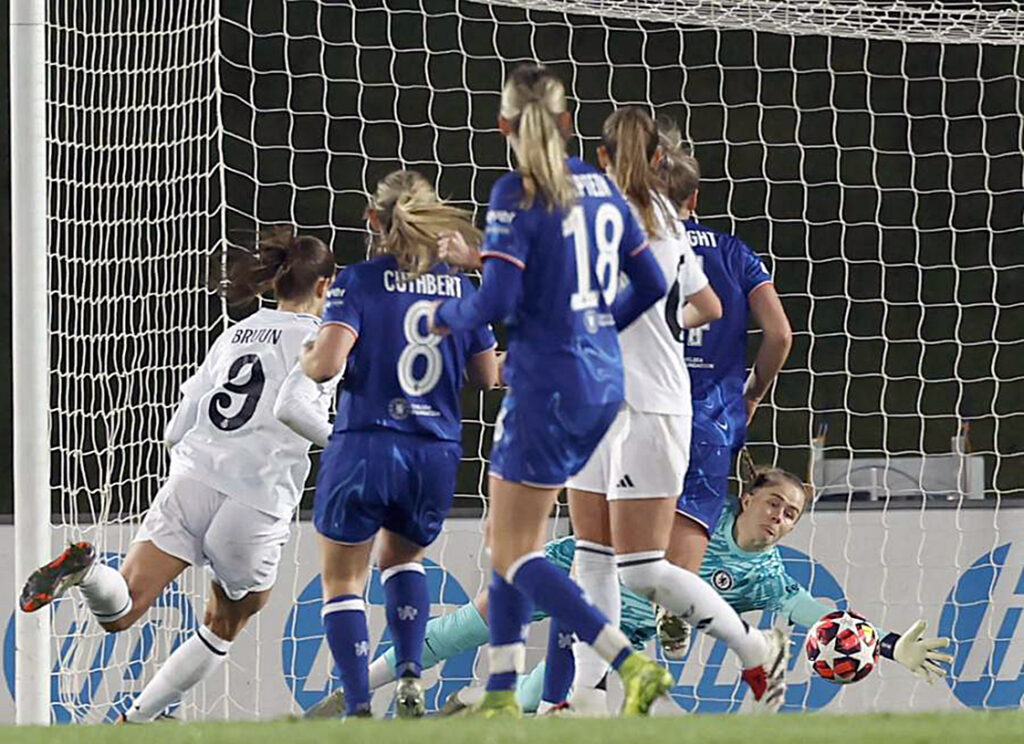 Madrid, España. Catarina Macario marcó dos goles de penal en cinco minutos para remontar (2-1) al Real Madrid, este martes en la Liga de Campeones femenina y certificar el primer puesto del equipo inglés en la fase de grupos.