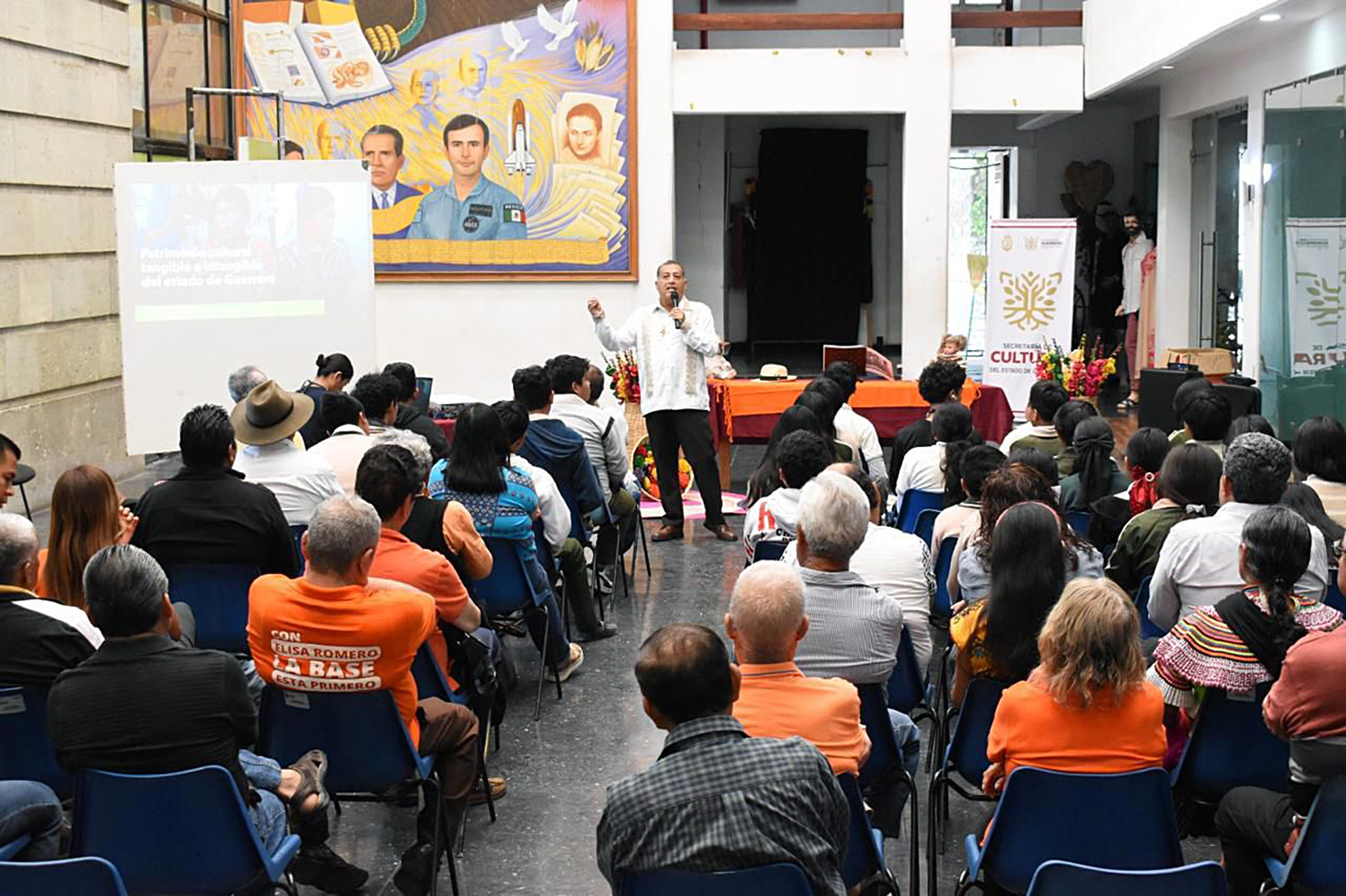 Chilpancingo, Gro., Se realiza en Palacio de Cultura de Chilpancingo una sesión de las «Charlas Culturales por la Paz» que impulsa el gobierno de Guerrero a través de la Secretaría de Cultura que dirige Aída Melina Martínez Rebolledo con el tema “Cultura popular”, a cargo del maestro Juan Carranza Soriano.