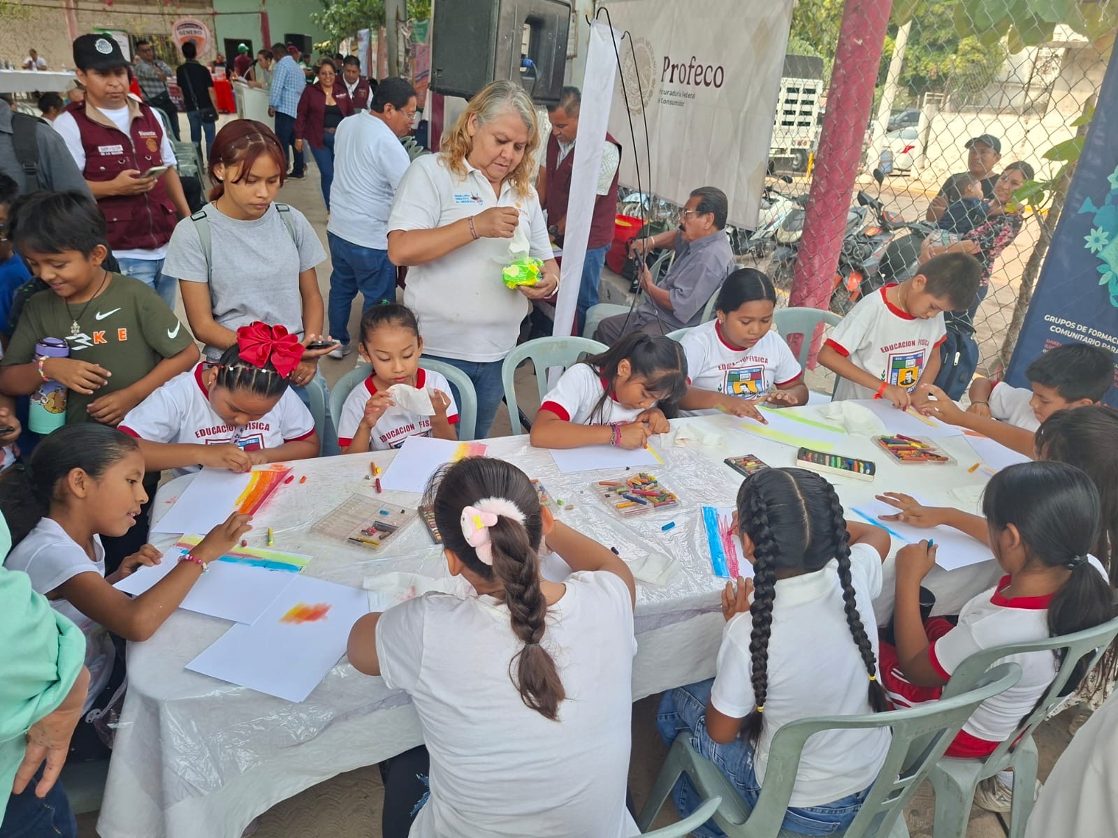 Iguala, Guerrero, Abril 18.- Autoridades de los tres niveles de gobierno realizan la cuarta “Feria por la Paz”, en esta ocasión, la sede fue la comunidad de Tuxpan, en donde se instalaron stands de salud, Registro Civil, proximidad social de la Guardia Nacional y Profeco, entre otros.