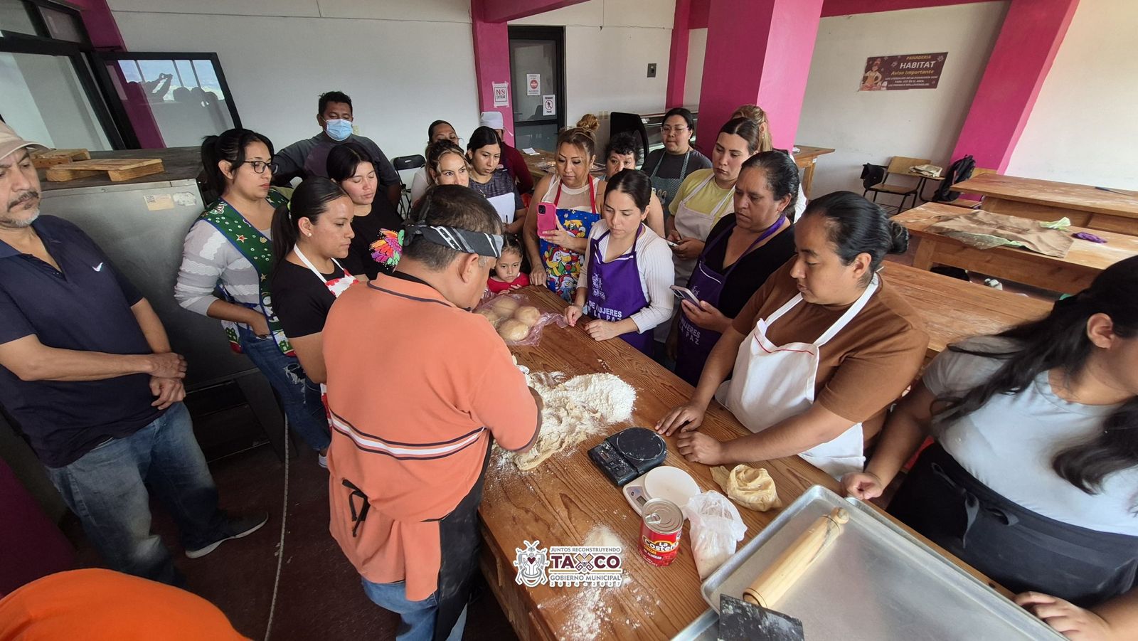 Taxco, Gro., Diciembre 18.- Con el propósito de fortalecer las tradiciones, fomentar el aprendizaje comunitario y generar oportunidades de desarrollo para las familias taxqueñas, el Gobierno Municipal, encabezado por el arquitecto Juan Andrés Vega Carranza, en coordinación con la Secretaría de Bienestar, llevó a cabo el Taller de Elaboración de Rosca de Reyes en las instalaciones de HABITAT.