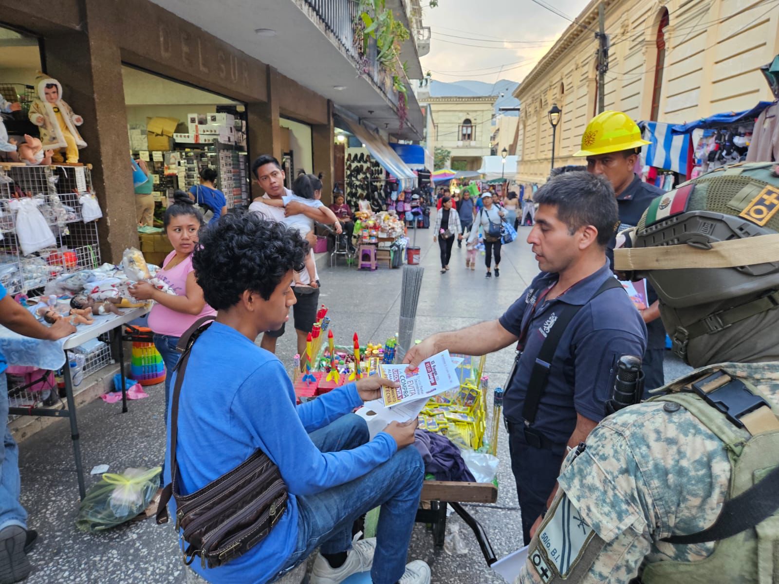 Chilpancingo, Gro.,, Diciembre 24.- Para prevenir incidentes durante las fiestas decembrinas y de fin de año, el gobierno del estado a través de la Secretaría de Gestión Integral de Riesgos y Protección Civil, emprendió acciones para inhibir la compra, venta y almacenamiento de artículos pirotécnicos en mercados, parques y otros espacios públicos en diferentes municipios de la entidad.