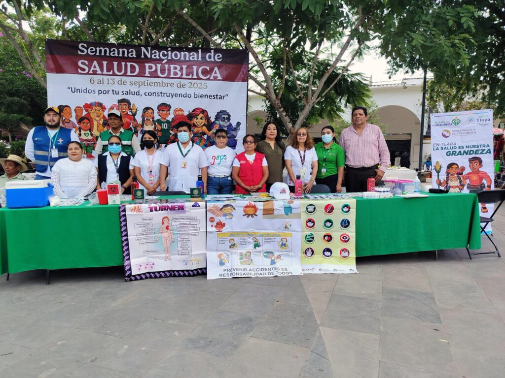 Tlapa, Gro., El Gobierno Municipal de Tlapa de Comonfort, encabezado por el presidente Gilberto Solano Arreaga, a través de la Dirección de Salud Municipal, dirigida por la enfermera Leonor Manzanares Rodríguez, en coordinación con la Jurisdicción Sanitaria 04 Montaña, el área de Promoción de la Salud, CENSIA (Centro Nacional para la Salud de la Infancia y la Adolescencia) y el área de Vacunación, continúa reforzando las acciones enmarcadas en la Semana Nacional de Salud Pública 2025, que se lleva a cabo del 6 al 13 de septiembre.
