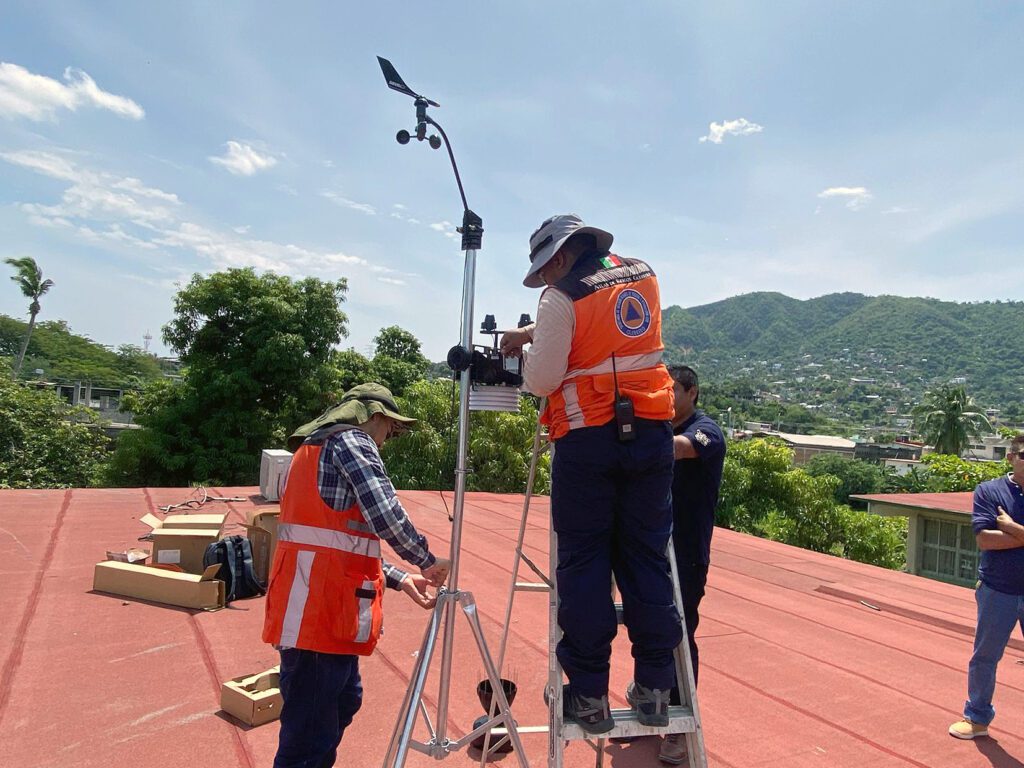 Este jueves se realizaron los trabajos correspondientes para la instalación de equipo especializado en el municipio de Tecpan de Galeana, que servirá para monitorear en tiempo real la velocidad del viento, niveles de temperatura y precipitación pluvial.