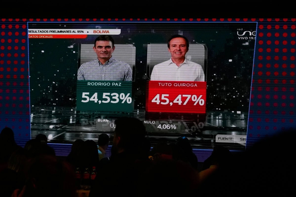 Bolivia, Octubre 20.- El conteo preliminar de votos en las elecciones presidenciales de este domingo en Bolivia mostraba una ventaja del senador de centro, Rodrigo Paz, al encabezar con 54 por ciento, respecto del ex mandatario conservador, Jorge Tuto Quiroga, que registraba 45 por ciento al computarse el 98 por ciento de las actas.