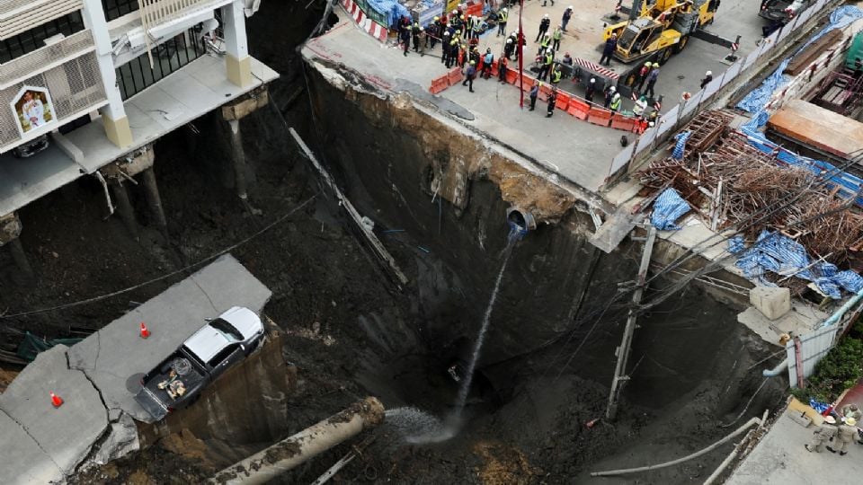El colapso, cuyas causas están bajo investigación, abrió un hueco de 50 metros de profundidad y de 30 metros de ancho por 30 metros de largo que se tragó una grúa que estaba estacionada frente al centro de salud.