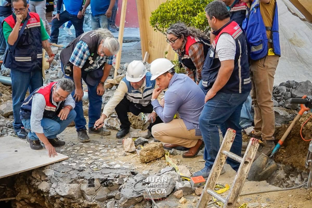 El edil informó que, desde que se tuvo conocimiento de esta afectación, se implementaron de manera inmediata los trabajos correspondientes, con personal capacitado y el apoyo de maquinaria pesada, a fin de identificar el origen del problema.