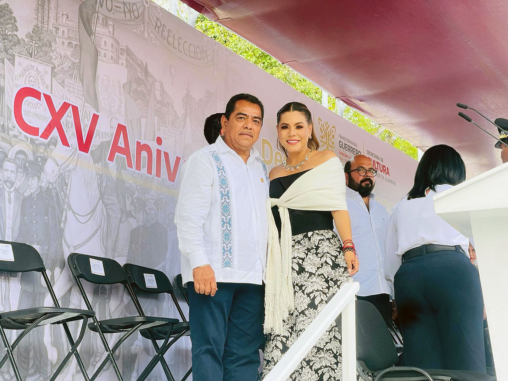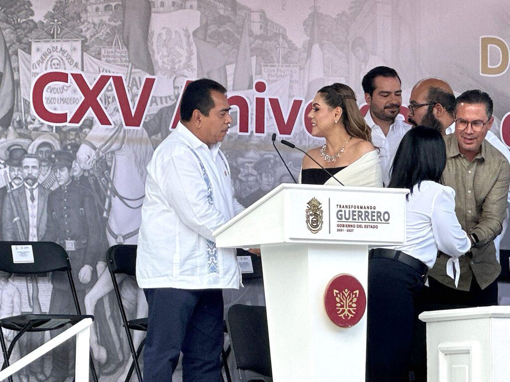Chilpancingo, Gro., Al concluir el Desfile Cívico-Deportivo por el 115 aniversario del inicio de la Revolución Mexicana en Chilpancingo, el Secretario General de la Sección 14 del SNTE, Mtro. Silvano Palacios Salgado, saludó a la gobernadora del estado, Mtra. Evelyn Salgado Pineda, quien le reiteró su respaldo al trabajo institucional a favor de las y los trabajadores de la educación.
