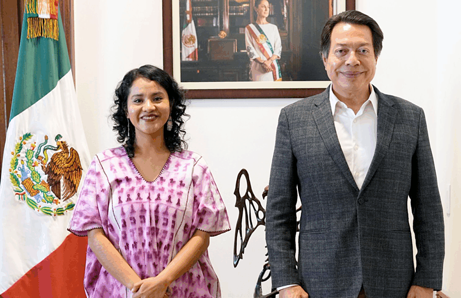 La dependencia compartió una fotografía de la nueva directora junto al titular de la SEP, Mario Delgado, y señala que ella es pedagoga, poeta indígena y activista en derechos educativos y culturales.