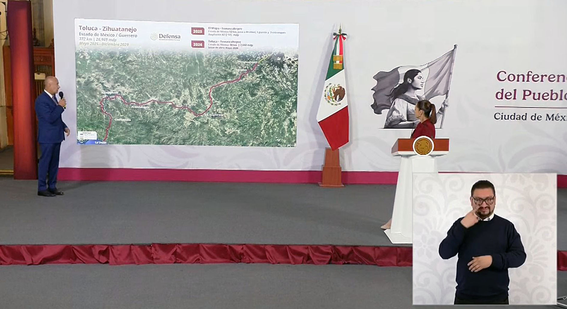 Asimismo, en el proyecto Salina Cruz–Zihuatanejo, que beneficia a Oaxaca y Guerrero con 423 kilómetros y una inversión de 24 mil 722 millones de pesos, indicó que en 2025 Guerrero registró avances equivalentes a 1 kilómetro intervenido, 8 puentes y una inversión de mil 606 millones de pesos.