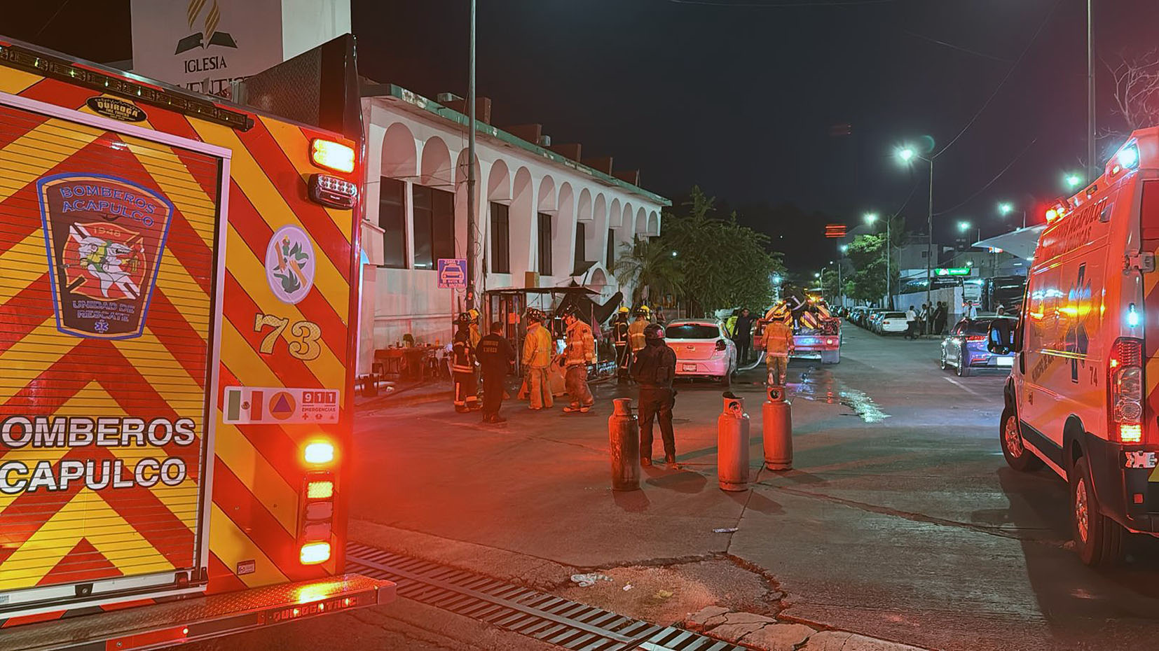 Acapulco, Gro., Elementos del Heroico Cuerpo de Bomberos de Acapulco sofocaron de inmediato un incendio registrado en un puesto de comida ubicado sobre la avenida Wilfrido Massieu, en el fraccionamiento Magallanes.