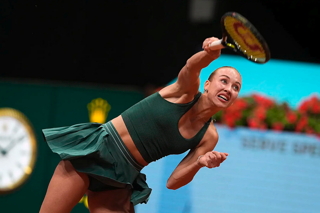 Madrid, España, La jornada de octavos de final femeninos en el Mutua Madrid Open cerraba con la participación de la No.2 del mundo Elena Rybakina, con el objetivo de seguir sumando sensaciones en la tierra batida, que históricamente ha sido su superficie menos favorita. Tras un ajustado debut ante la rumana Ruse, la kazaja necesitó de otra remontada ante la china Qinwan Zheng. Su rival era la austriaca Anastasia Potapova, que tras ingresar al cuadro como Lucky Loser, sumó victorias ante Shuai Zhang y ante Jelena Ostapenko para llegar a esta instancia.
