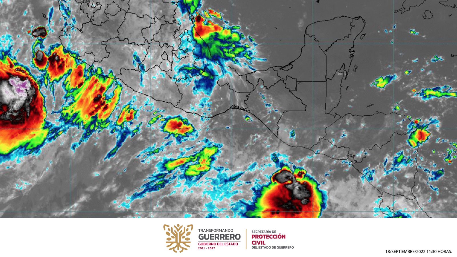 Chilpancingo, Gro., 18 de septiembre del 2022.- La Secretaría de Protección Civil Guerrero informa que para las próximas horas se prevé la manifestación de lluvias de aisladas a intensas favorecidas por la vaguada monzónica, que se localiza sobre los estados de Guerrero, Oaxaca y Chiapas, y la entrada de humedad en ambos litorales, por lo que se recomienda mantener las medidas de precaución, sobre todo en zonas consideradas como de alto riesgo.