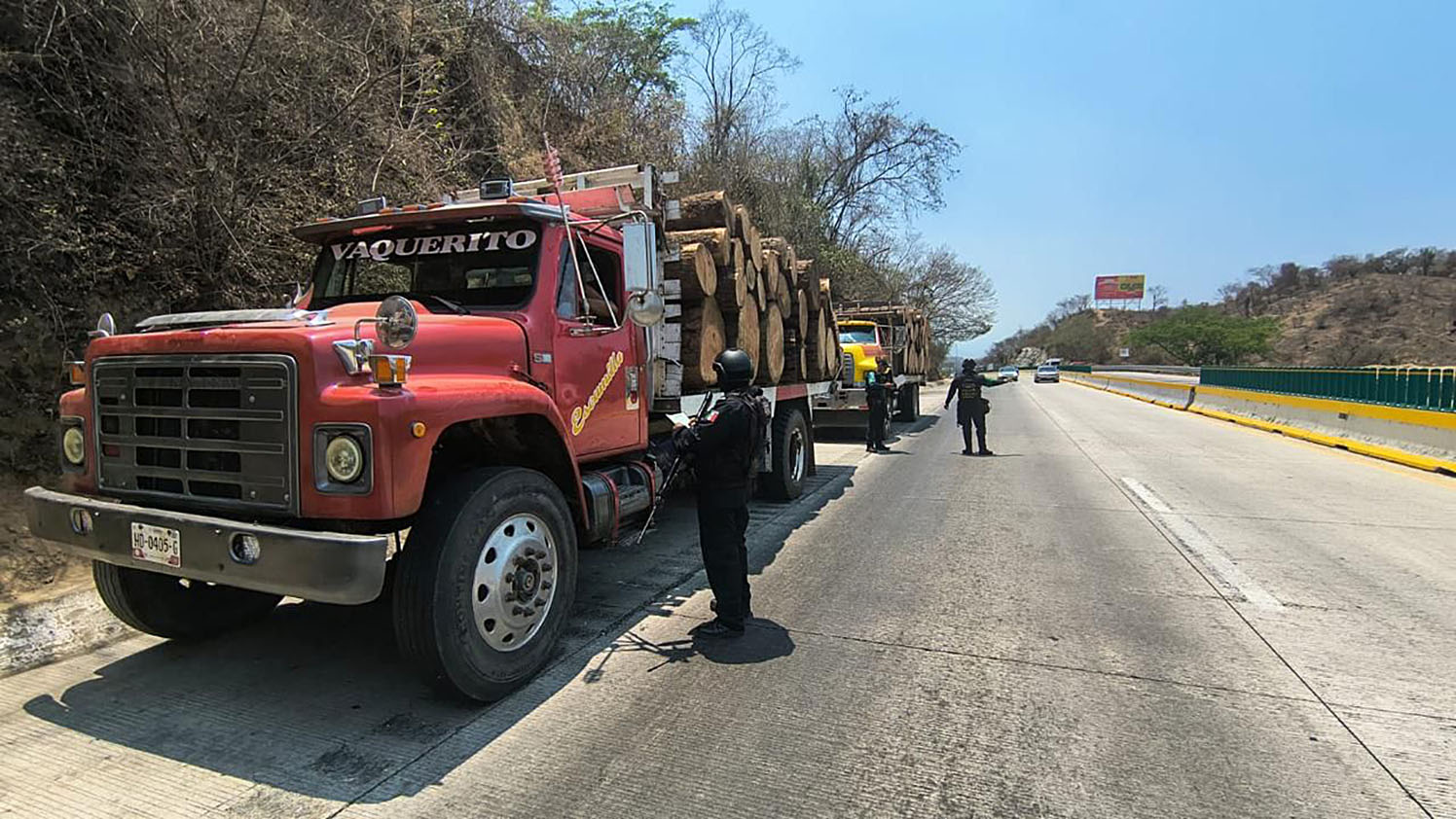 Chilpancingo, Gro., Como parte de las acciones para prevenir la tala ilegal, personal de la Policía Ecológica Estatal instala filtros de control sobre la Autopista del Sol México–Acapulco, en el tramo Acapulco–Chilpancingo, dentro del municipio de Acapulco.