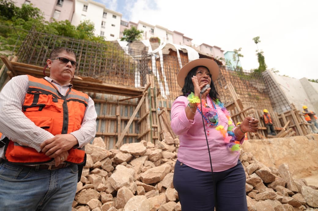 En su intervención, la alcaldesa recordó que esta obra se originó tras los desgajes totales del muro anterior, causados por los huracanes Otis y John, que pusieron en riesgo la integridad de las y los habitantes. Ante esta situación, instruyó integrar la obra al plan de reconstrucción y apoyo a la ciudadanía.