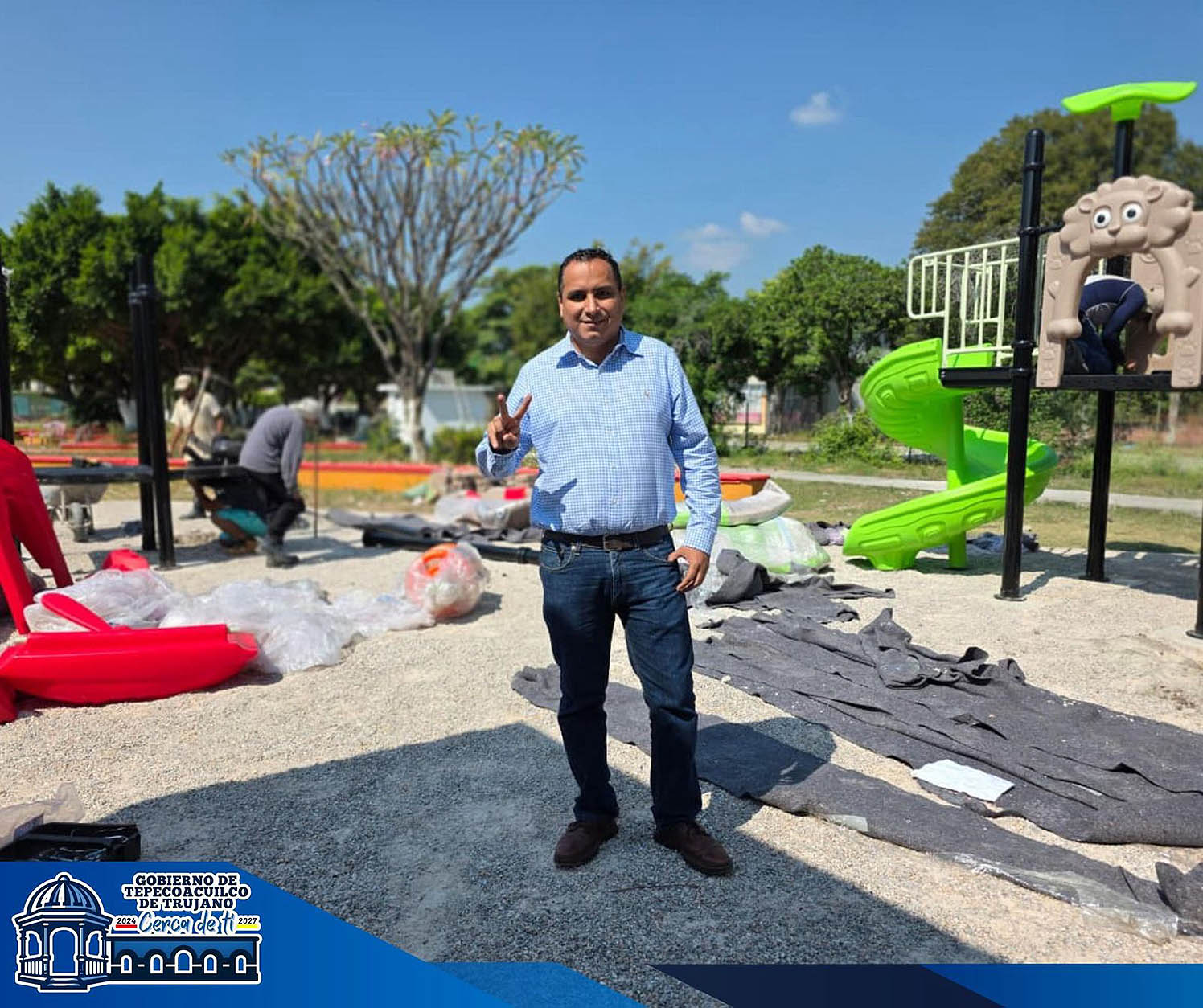 El presidente municipal de Tepecoacuilco, Julio Galarza Castro, realizó una visita de supervisión a la obra de rehabilitación del parque público en la comunidad de San Vicente Palapa, constatando los avances y reafirmando el compromiso de seguir impulsando espacios dignos para las familias. / Foto: DCS TEPECOACUILCO