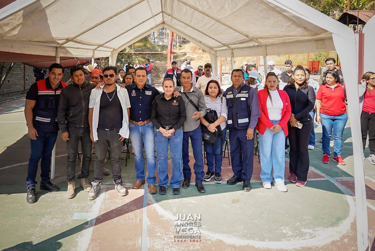 Taxco, Gro., Febrero 6.- El alcalde Juan Andrés Vega visitó la comunidad de El Potrero, donde se está llevando a cabo la obra de Rehabilitación de la Unidad Deportiva El Potrero, un proyecto que representa una inversión importante en infraestructura deportiva y social, destinada a fomentar el deporte, la sana convivencia y el desarrollo integral de niñas, niños, jóvenes y familias de la comunidad.