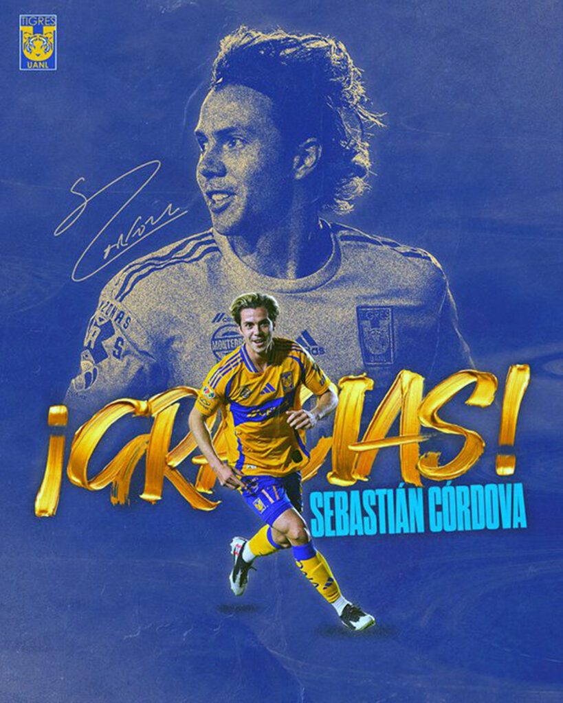 Monterrey, NL., A través de redes sociales, Tigres anunció la salida del jugador mexicano Sebastián Córdova, quien finalizó su vínculo con la institución felina, a la que llegó para el 2022, dejando el último título de Liga MX dentro del equipo.