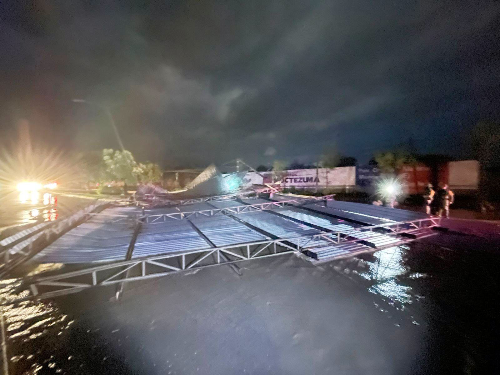 Detallaron que en el monumento Obelisco ubicado en la carretera federal Iguala-Ciudad Altamirano se cayó un techo grande, el cual cubrió la vía y dejó cables de alta tensión sobre el camino.