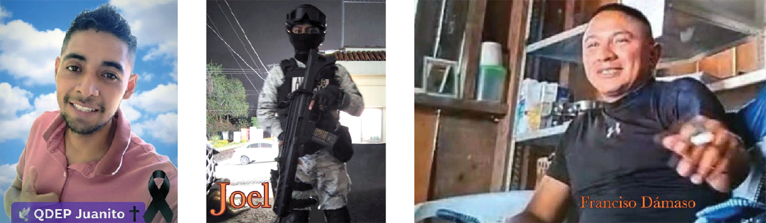 Con base a los documentos oficiales, se trata del teniente Francisco Dámaso Aragón Luna, originario de Iguala; Juan Daniel Hernández Valencia, de Chilapa de Álvarez; y Joel Francisco Domínguez, de Zihuatanejo. Dos de ellos estaban adscritos al Batallón de Infantería con sede en Iguala.