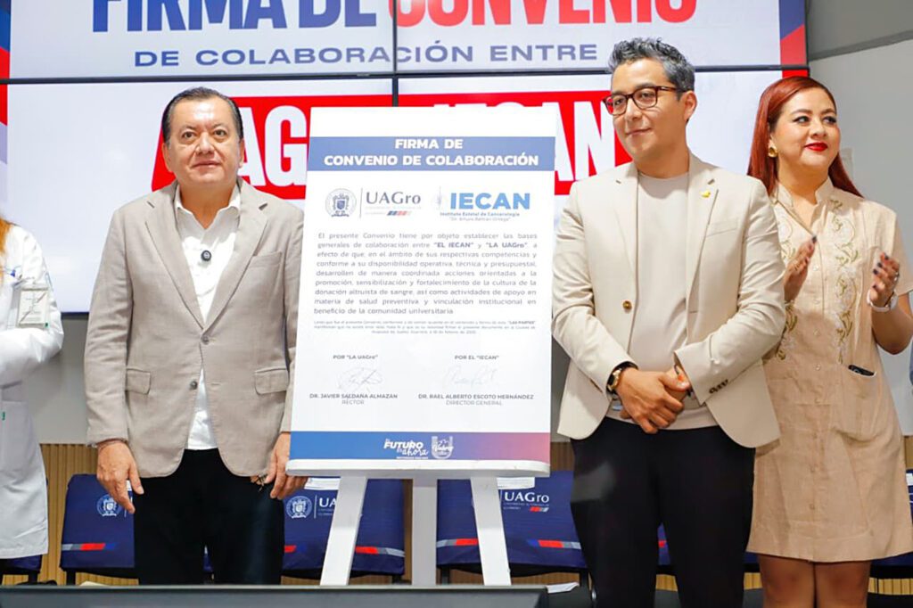 Chilpancingo, Gro., El rector de la Universidad Autónoma de Guerrero (UAGro), Javier Saldaña Almazán, firmó un convenio de colaboración con el director general del Instituto Estatal de Cancerología (IECAN), Rafael Escoto Hernández. El objetivo es fortalecer la formación académica de estudiantes del área de la salud y desarrollar acciones conjuntas en beneficio de la población guerrerense.