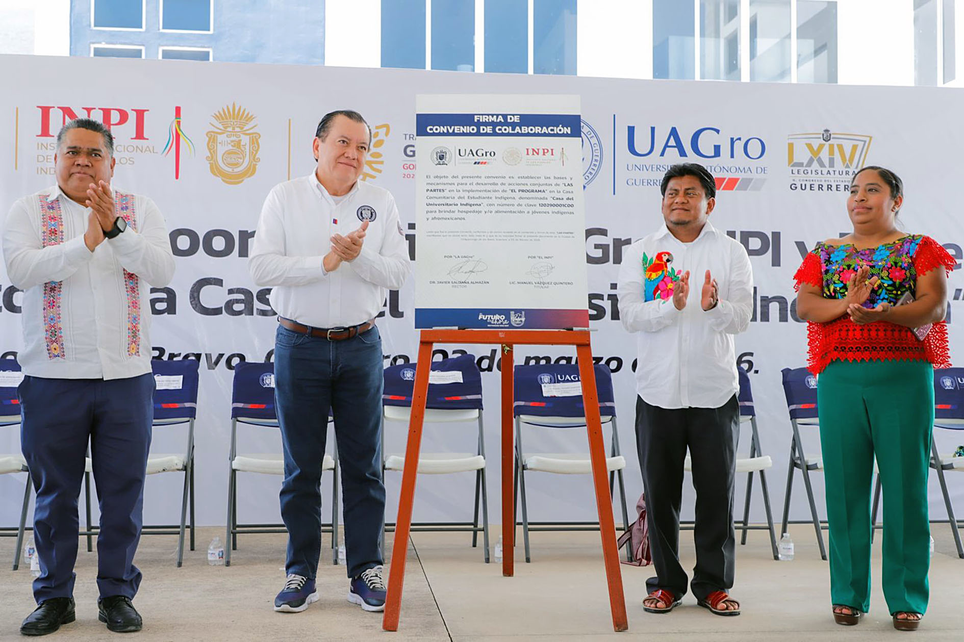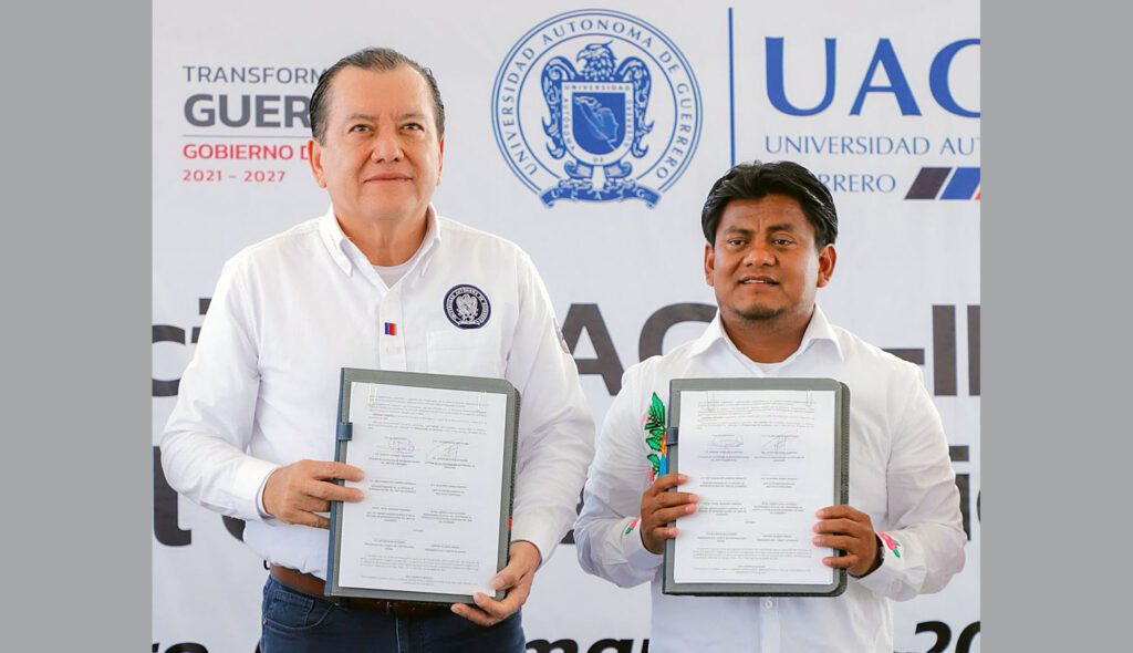 Chilpancingo, Gro., Con el firme compromiso de construir una educación superior incluyente y de excelencia, el rector de la Universidad Autónoma de Guerrero, Javier Saldaña Almazán, firmó un convenio de colaboración con el Instituto Nacional de los Pueblos Indígenas (INPI) para ampliar las oportunidades educativas y mejorar las condiciones de las y los estudiantes provenientes de pueblos originarios.