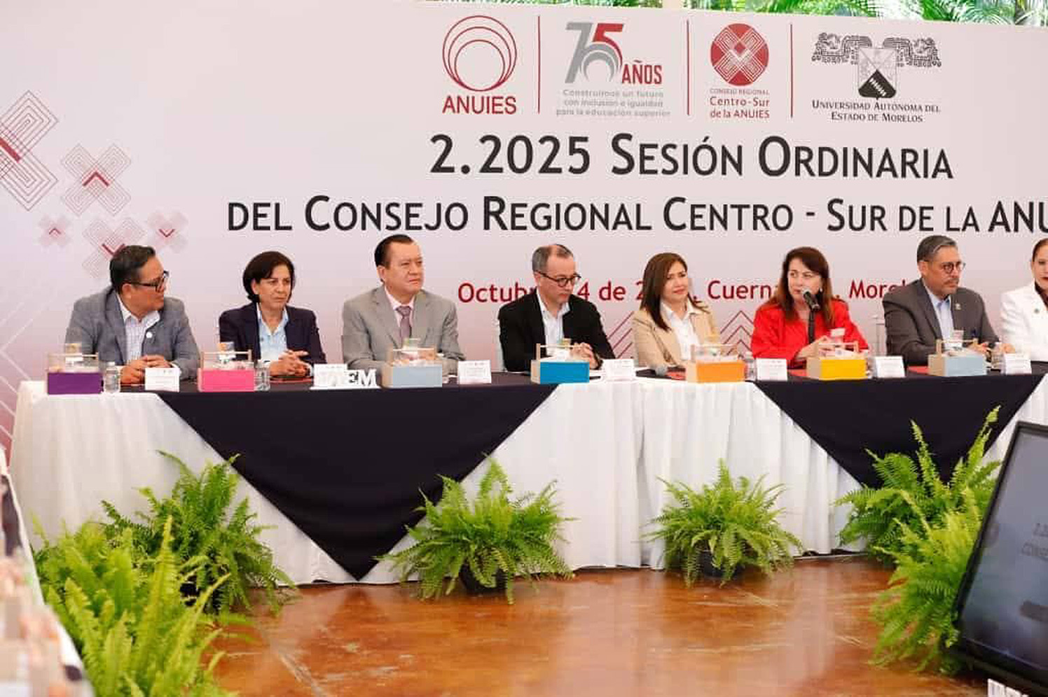 Saldaña Almazán participó en la Segunda Sesión Ordinaria del Consejo Regional Centro-Sur de la ANUIES, celebrada en la Universidad Autónoma del Estado de Morelos (UAEM), donde se abordaron los retos y oportunidades de las universidades como agentes de transformación social y motores del desarrollo económico regional.